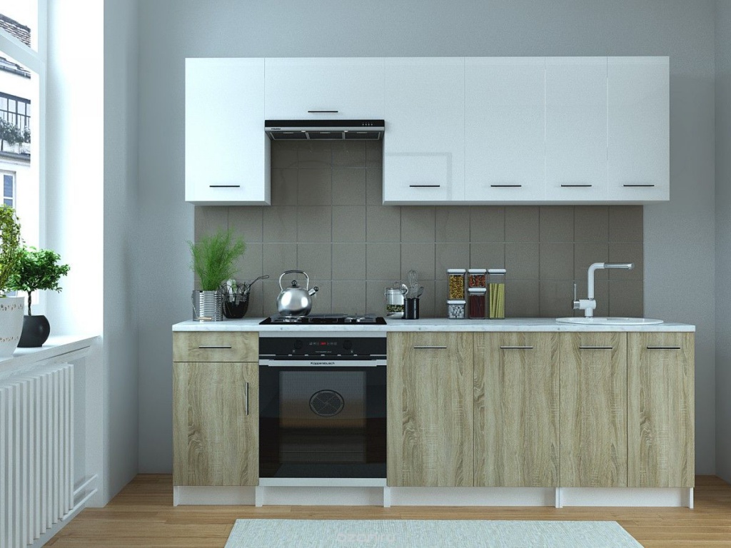 Кухооный гарнитур белый глянец/дуб сонома 2400