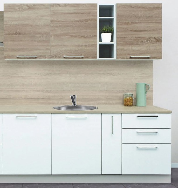 Кухооный гарнитур белый глянец/дуб сонома 2400 Боровичи мебель, Кухонные гарнитуры