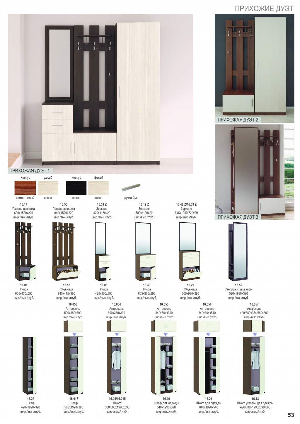 МОДУЛИ ПРИХОЖЕЙ ДУЭТ Боровичи мебель, Прихожие Дуэт